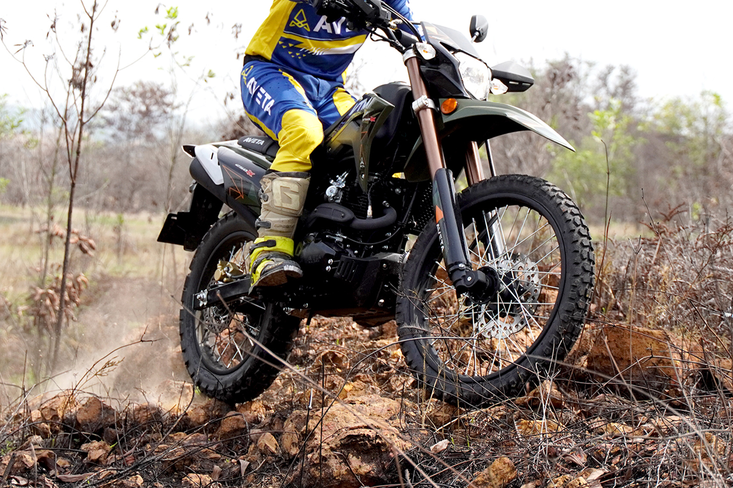 The Aveta VTM 250 is offered Petrol engine in the Malaysia. The new Adventure Touring from Aveta comes in a total of 2 variants. If we talk about Aveta VTM 250 engine specs then the Petrol engine displacement is 250 cc. VTM 250 is available with Manual transmission. The VTM 250 is a 2 Seater Adventure Touring and has a length of 2133 mm the width of 780 mm, and a wheelbase of 1396 mm. along with a ground clearance of 305 mm.